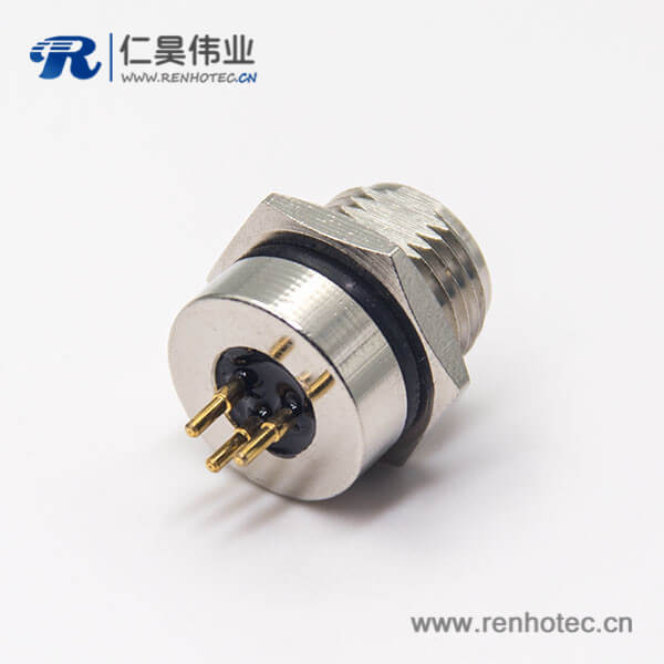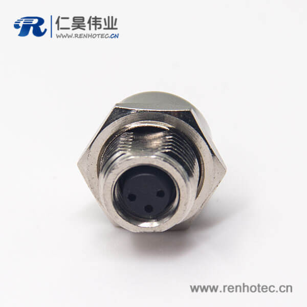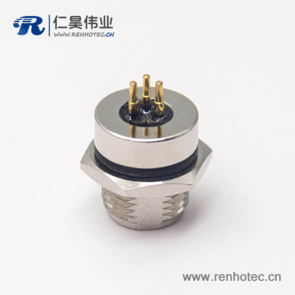 料号:RHT-634-1097 标签:M8,3芯,板端插座,母头,直头,面板安装,前锁板,插PCB板