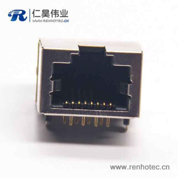 rj45网口座8p8c弯式半包带屏蔽插PCB板