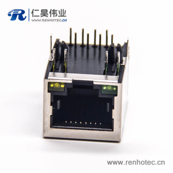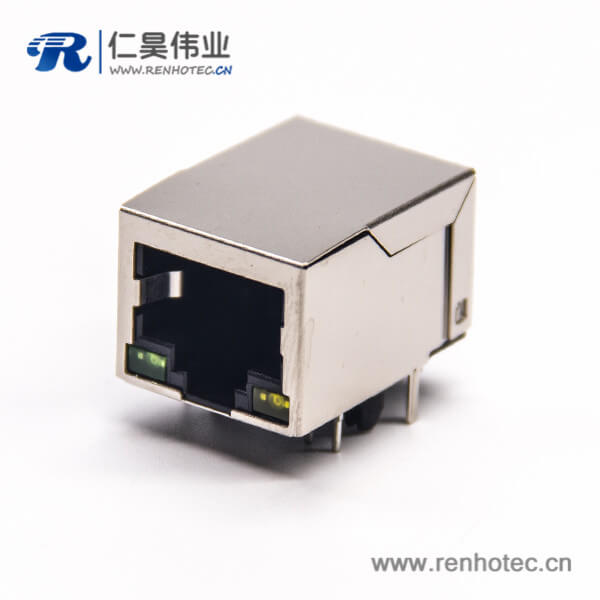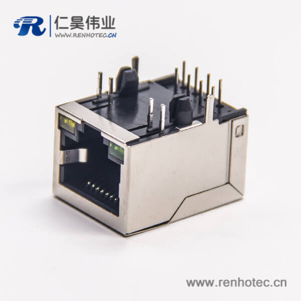 标签:RJ45插座,8P8C,单端口,1*1,弯式90°,触头镀金,插孔,PCB板安装,带屏蔽,带灯,不带滤波