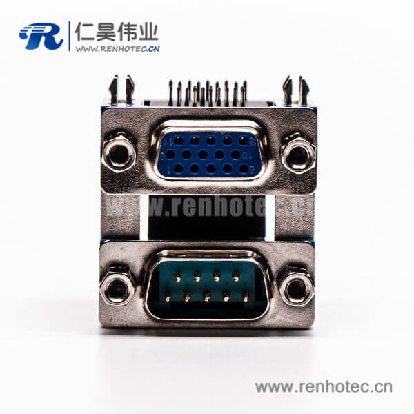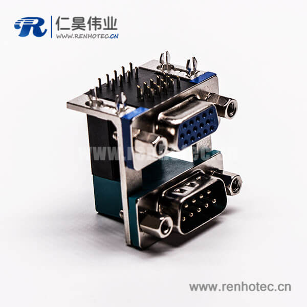 料号:RHT-681-1206 标签:D-sub接插件,高密度+标准型,弯插,双胞胎,9公针,15母针,3.08铆锁,穿孔,插pcb板 产品特点: