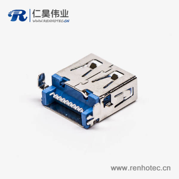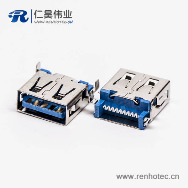 标签:USB3.0,Type A,母头,弯头.沉板,SMT,蓝色胶芯,PCB板,两脚插板